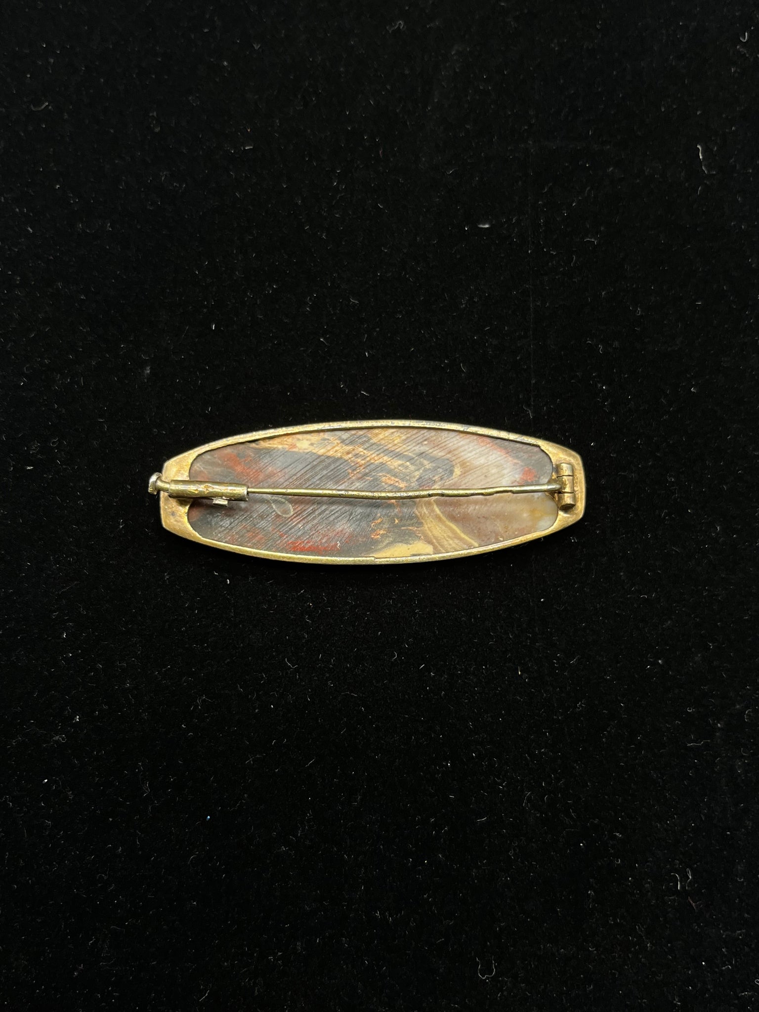 Vintage Russian 875 silver brooch pin with oblong brown stone