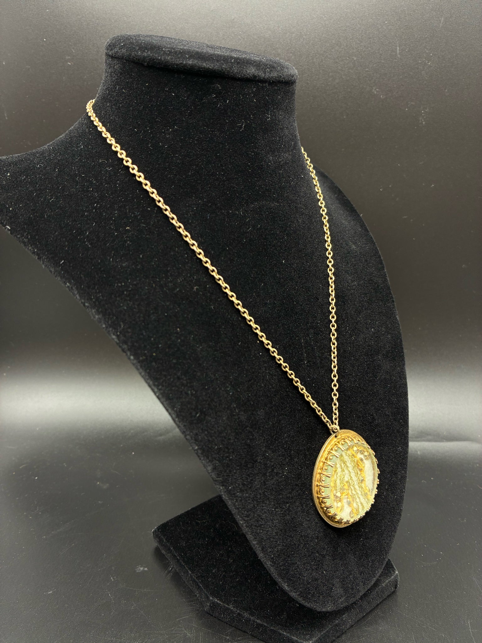 Presh signed sterling silver vintage embroidered fabric pendant necklace