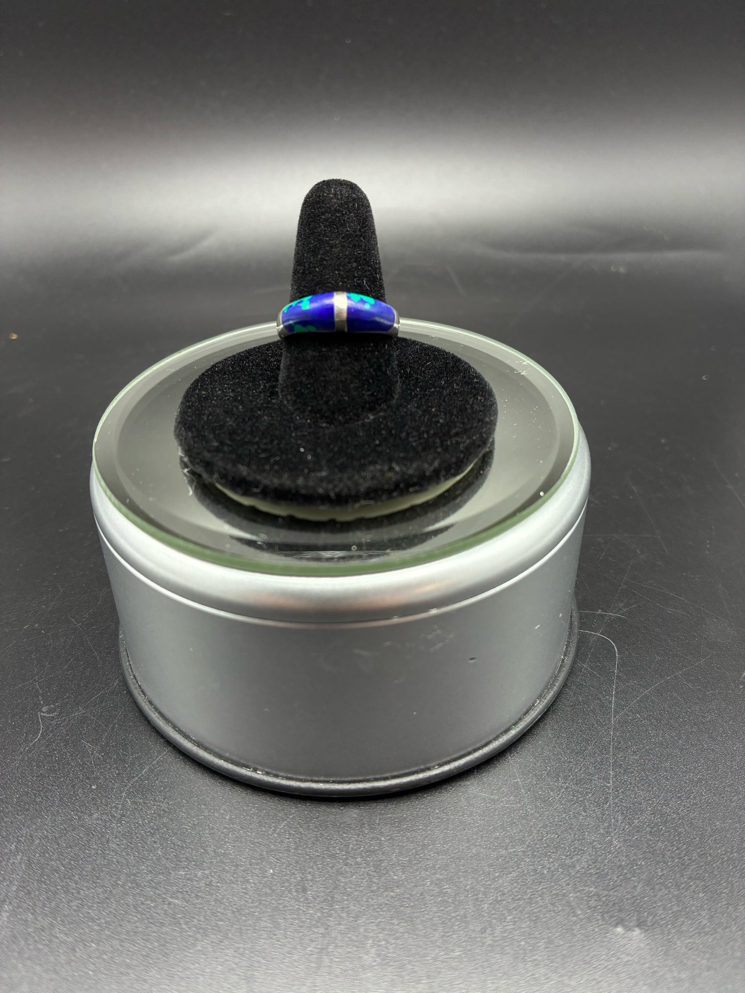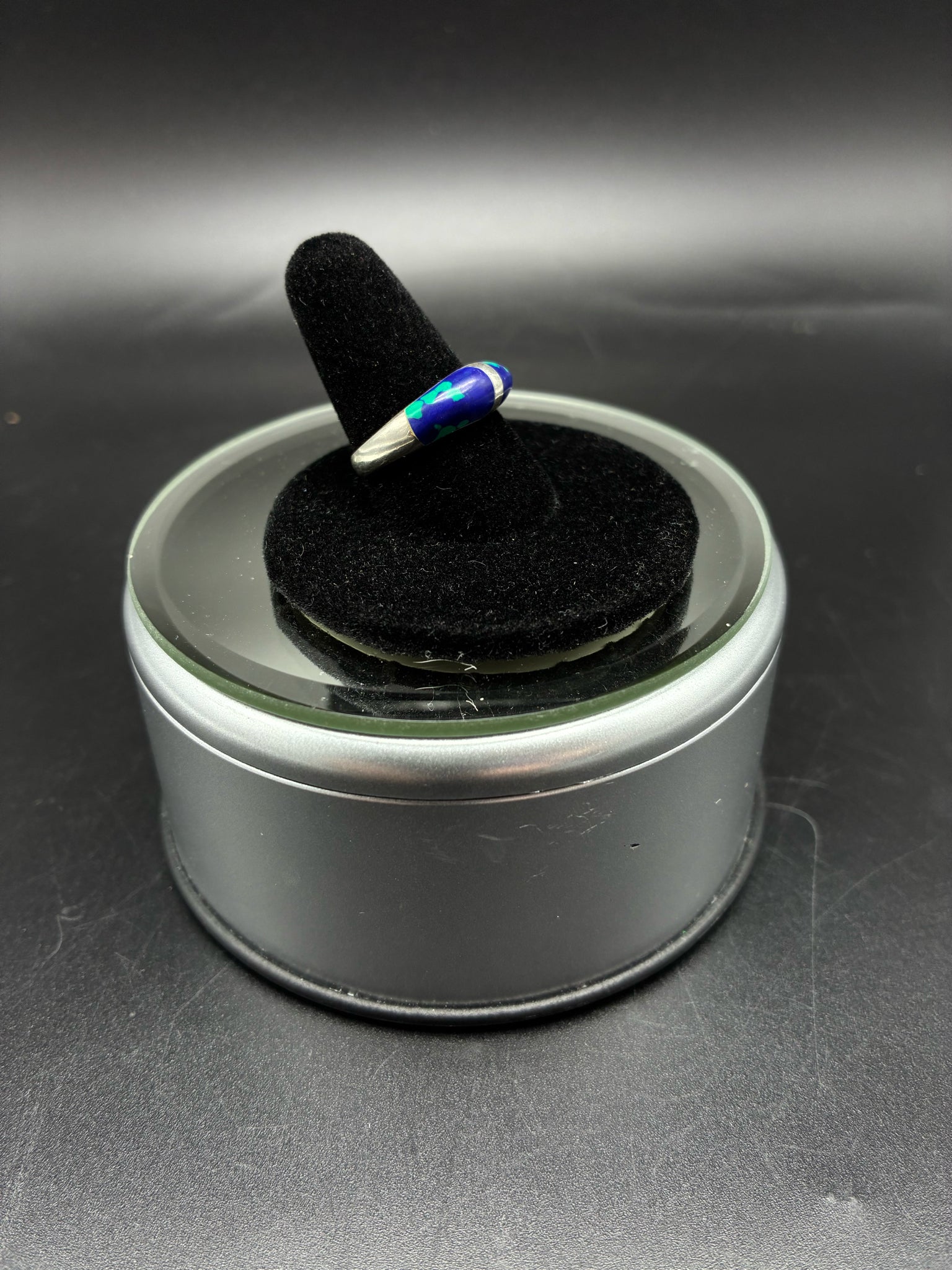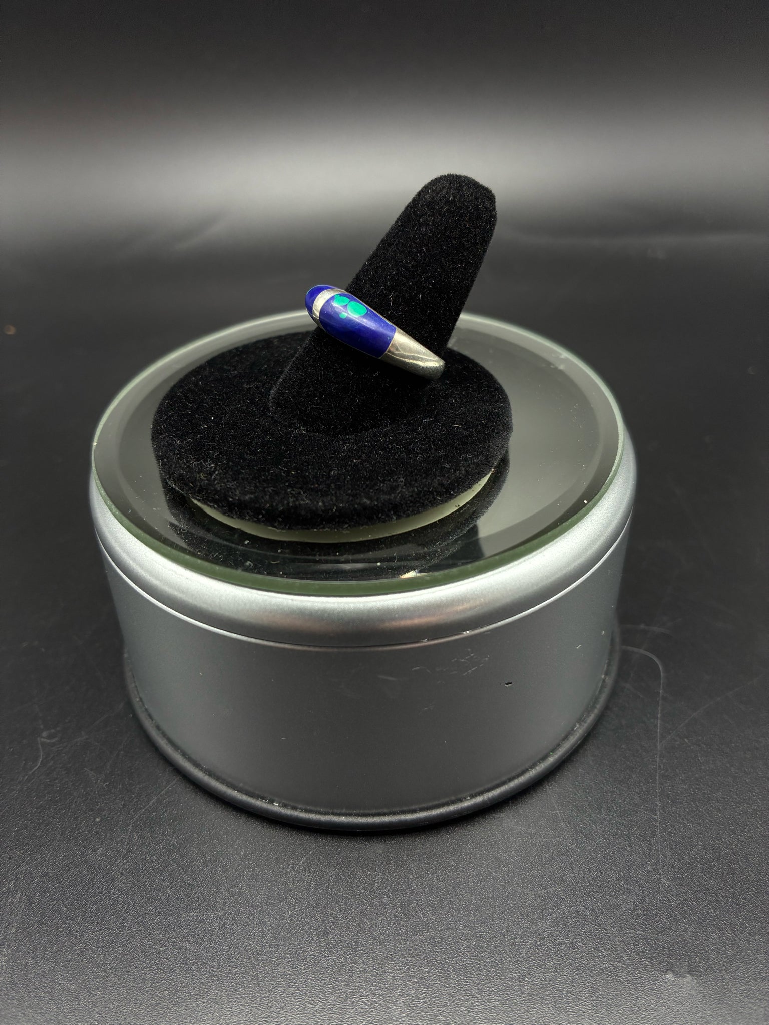 sterling silver ring with inlaid azurite-like stone, size 6.75